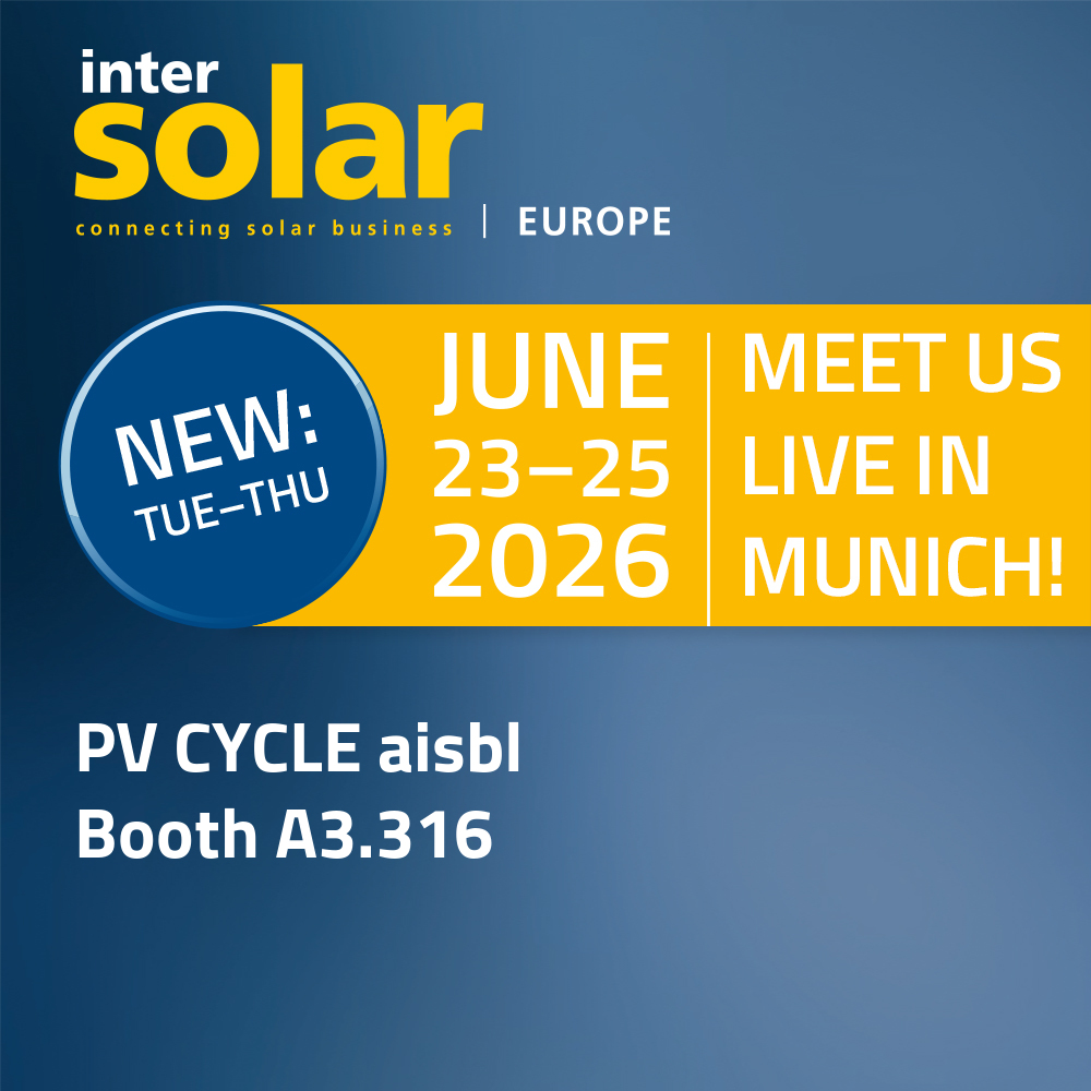 The World's Leading Exhibition for the Solar Industry. The teams from PV CYCLE aisbl, Germany, Italy, and the UK will be on hand to welcome you. Please feel free to contact us in advance to make an appointment at the event. Our booth: A3.316